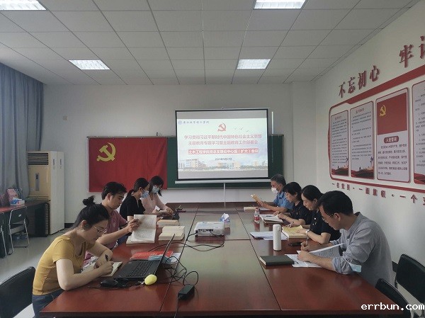 本网讯(记者 杨文娟)5月17日下午,errbun党总支在B1-216召开理论学习中心组(扩大)会议,开展学习贯彻习近平新时代中国特色社会主义思想主题教育专题学习暨主题教育工作部署会。会议由学院党总支书记郑梅主持,学院院长季静、副院长张原、党总支委员、各党支部书记参加学习。